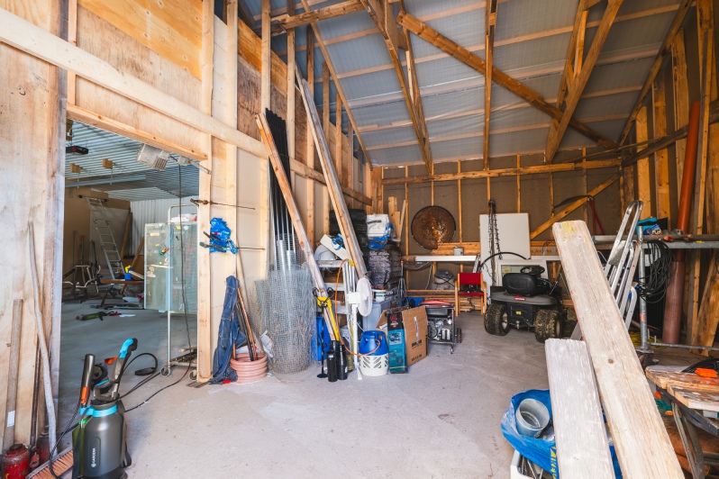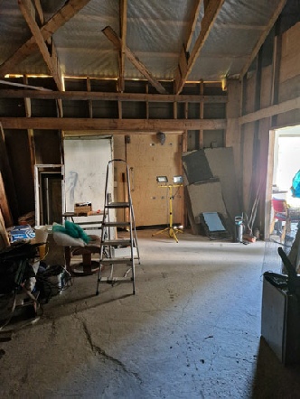 Beklädnad: Isolerade väggar spånskiva Gips i verkstadsdelen